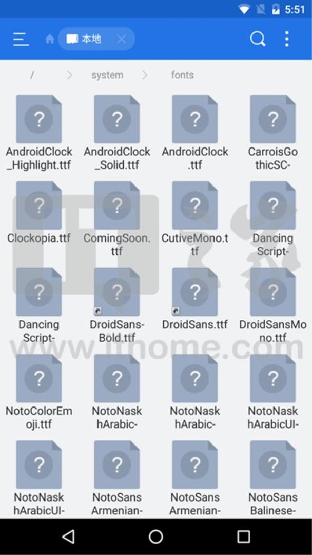 这个就太容易理解了,相当于Windows PC当中的C:\Windows\Fonts文件夹,你的手机中的字体就是保存在这个文件夹里。想当年,小编还在用安卓2.2,当时ROOT手机的目的只有两个,一是要截图,二是要换字体。现在安卓已经出到7.1.2了,截图根本就不是什么难事,换字体这种事情也懒得折腾了,当年真是图样图森破。
