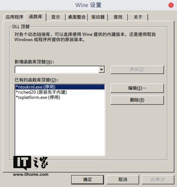 其中:停用ntoskrnl.exe是为了解决无法正常启动QQ的问题,使用原装的riched20是为了规避无法输入用户名的Bug,停用txplatform.exe是为了避免QQ无法完整退出而滞留整个Wine容器的问题。