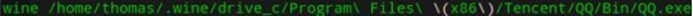 完成上述步骤后,你的QQ应该位于~/.wine/drive_c/Program Files (x86)/Tencent/QQ/Bin目录下。导航到这个目录下,并使用指令:
