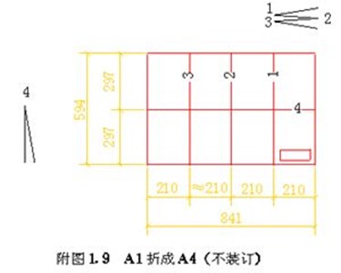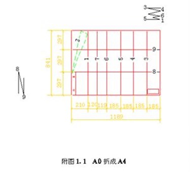 2、A1折叠成A4的方法见下图。注意折叠顺序和尺寸。