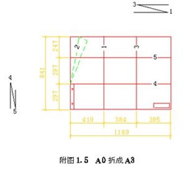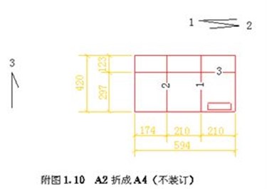 1、A0折叠成A4,需装订,留边:按下图中的顺序和尺寸,慢慢体会。折完后图号在上,有装订边。
