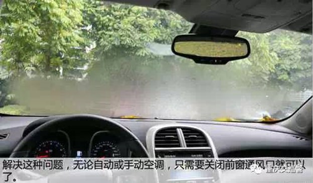 为什么前挡玻璃会无缘无故起了一片雾呢?其实是因为没有关闭前窗除雾功能,导致冷风一直对着玻璃吹,时间一长,玻璃温度变得比外界环境温度低了,自然就有水汽在玻璃表面凝结。解决的方法很简单,无论自动或手动空调,只需关闭前窗通风口就好。