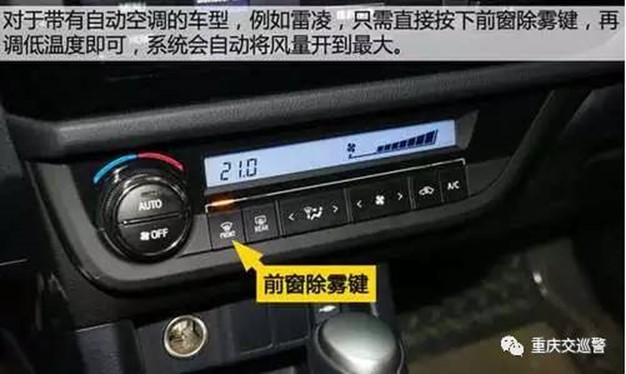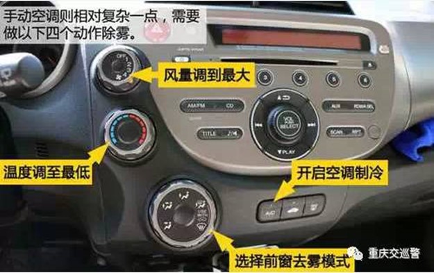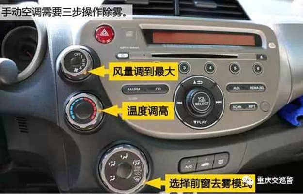 手动空调的车型则可以将温度调高,将风量调至最大,然后开启前窗除雾功能,等待数分钟就可以"消灭"雾气了。