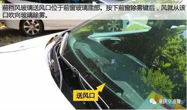 为了更快地降低玻璃内表面温度以及将玻璃表面的水汽吹走,除雾时需要按下前窗除雾键,按下后,中控面板上的的出风口风量会减少,大部分风量都通过前挡风玻璃下部的出风口吹出。