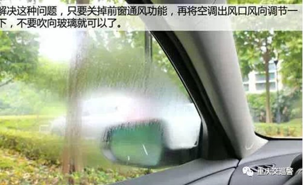 天气忽冷忽热,行车的时候外面突然下起了雨,车内挡风玻璃就容易起雾,阻挡视线;此时,你需要开启空调,并吹向挡风玻璃的方向。方法:冷风→热风;一直冷风;打开车窗,让车内外温度基本一致。