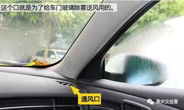 中控板上两边各自都有个固定的出风口,就是用来给车门玻璃除雾送风用的。