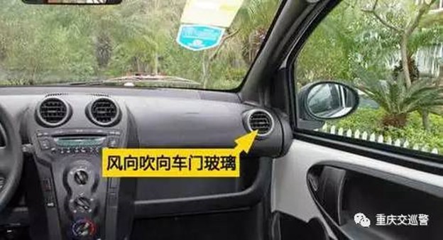 有那么一些车,中控两侧是没有侧窗送风口的,这种情况只能手动将空调的出风口摆向车窗玻璃,使用这种方法的话,就要先将前窗除雾功能关闭,以免中控板的空调出风口风量太小,达不到除雾的效果。