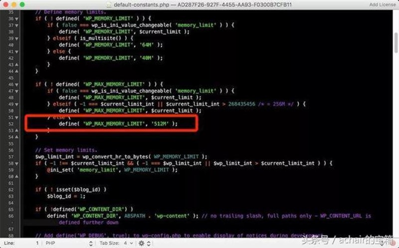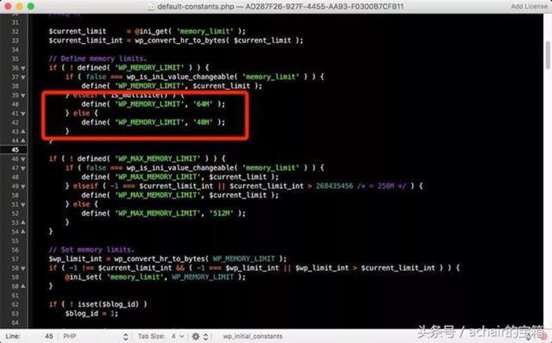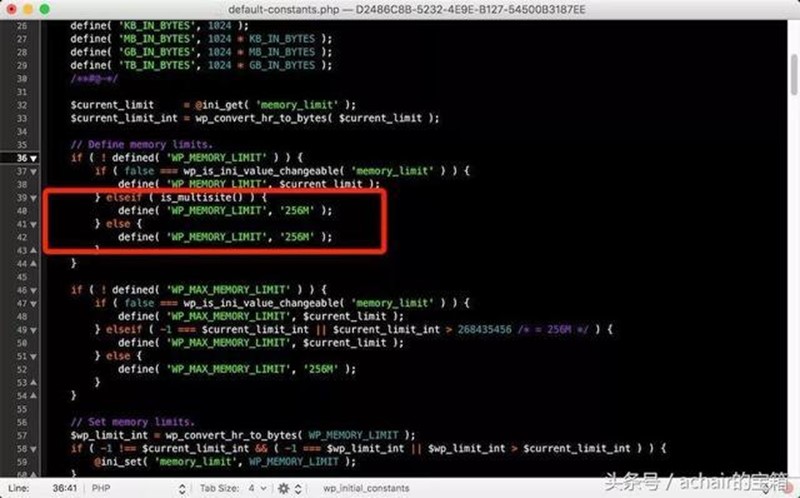 这节课讲的是修改WordPress的一个文件,这个文件是WordPress自带的,和主题或者插件无关,路径是: /wp-includes/default-constants.php 在这个文件的第40行左右的位置,如下截图: