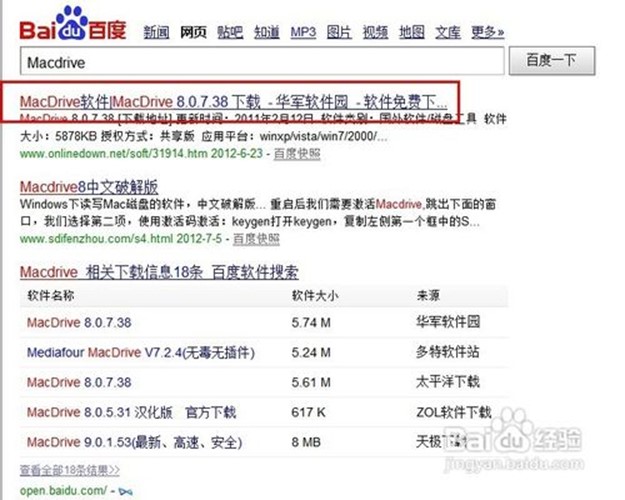 在百度搜索"Macdrive"关键词,搜索出来的结果点击第一条链接