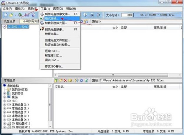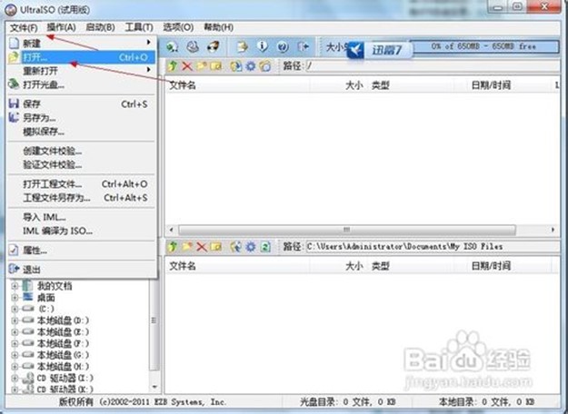 方法1:运行UltraISO软件, 单击"文件"菜单中的"打开"命令