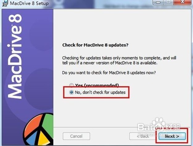 在"检查MacDrive 8更新"界面选择"NO,don't......",单击"Next"继续