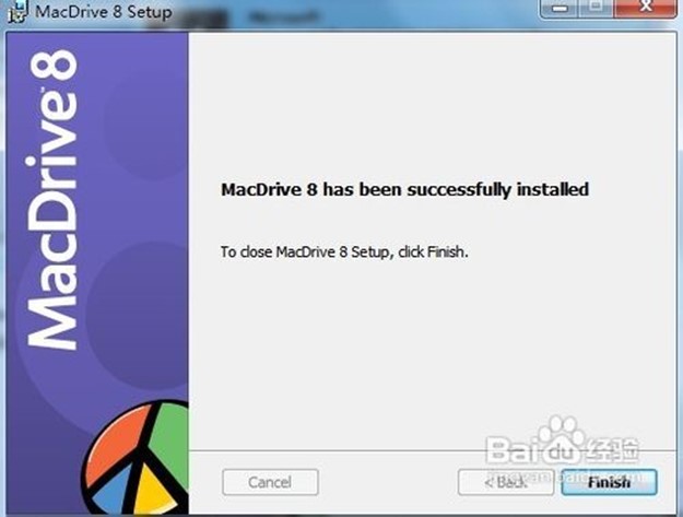 在"MacDrive 8 has been successfully installed(MacDrive 8已成功安装)"界面单击"Finish"按钮