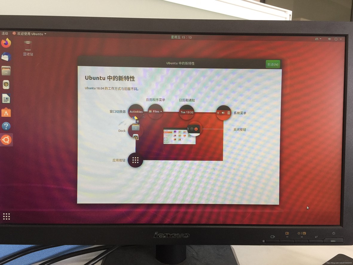 10. 重启后输入选择启动Ubuntu,登陆后显示如下界面,表示安装完成