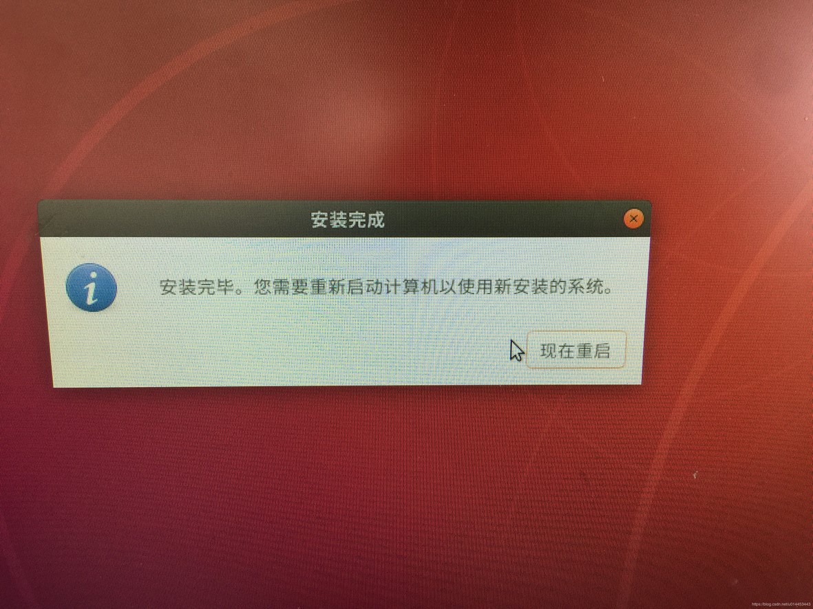 9. 安装完成之后 ,弹出安装完毕对话框,表示安装完成,点击现在重启,然后拔掉U盘