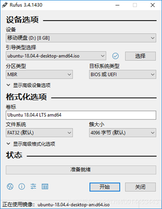 按照如图设置后,软件会把ubuntu-18.04.4-desktop-amd64.iso文件,写入U盘,制作系统启动盘。