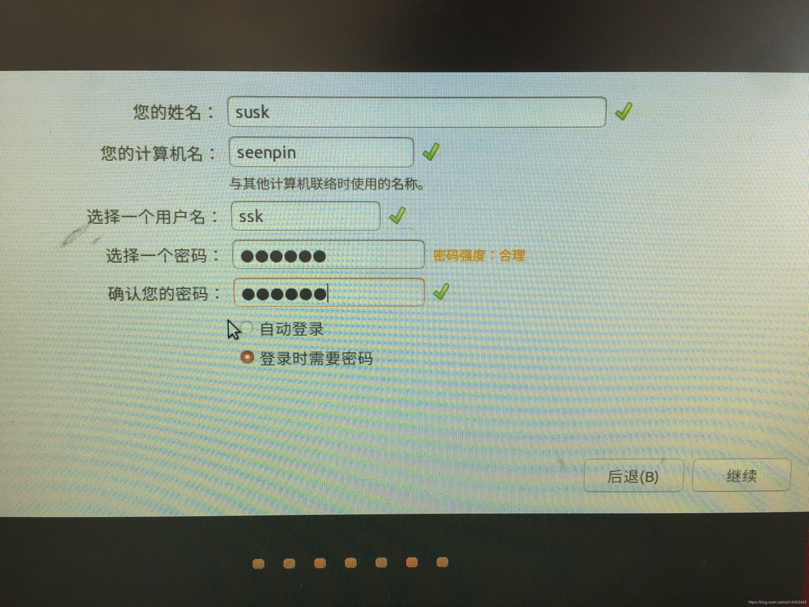 7. 填写姓名、计算机名,用户名,密码,具体解释在下面,然后点击继续