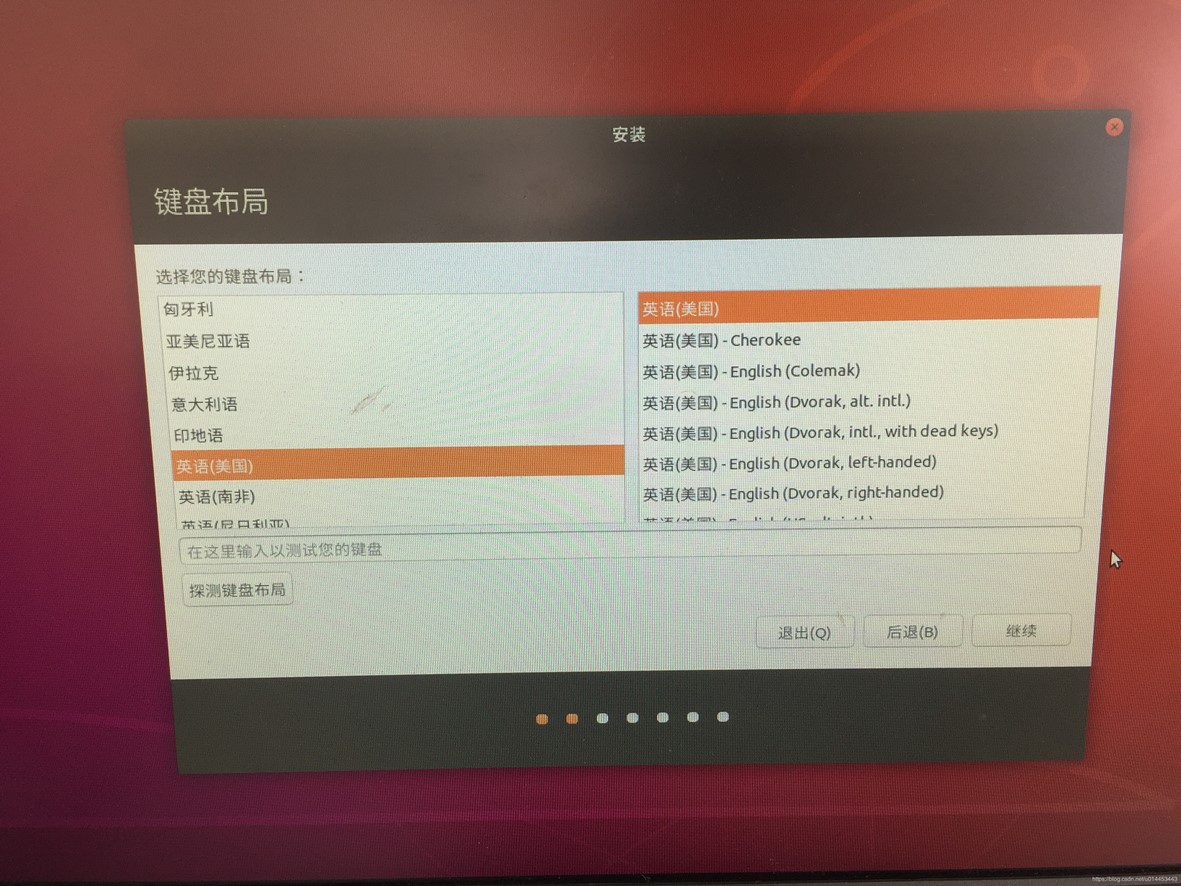 2. 选择键盘布局,直接默认,然后点击继续