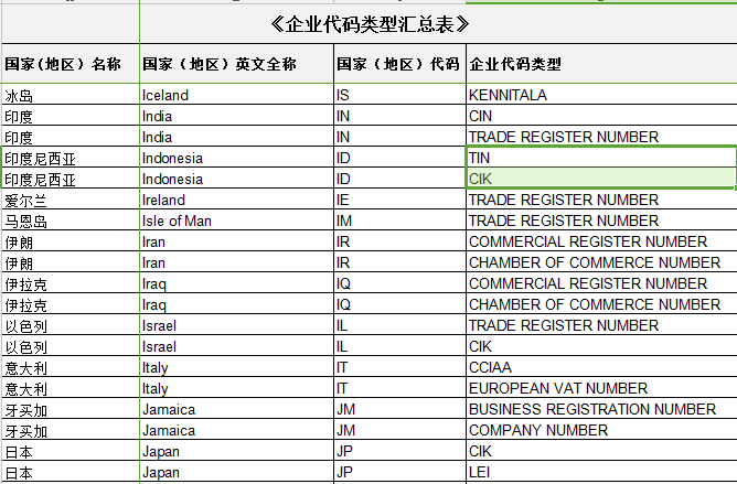 日本、津巴布韦、老挝、利比里亚等国- Legal Entity Identifier (LEI代码)