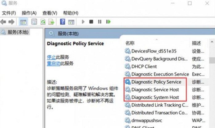 第二步:进入服务后下拉找到Diagnostic Policy、Diagnostic Service Host、Diagnostic System Host三个选项。