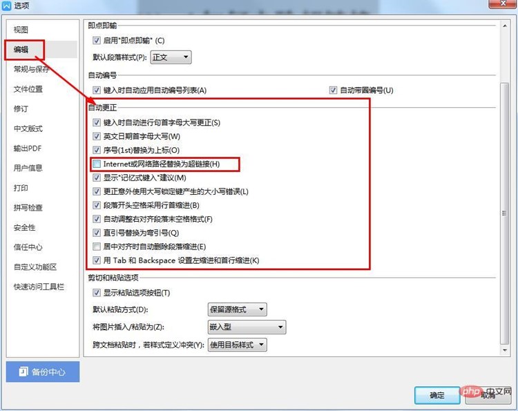 在打开的选项对话框中,选择【编辑】;然后在右侧找到【自动更正】区域,将【Internet或网络路径替换为超链接】前复选框中的√去掉,点击确定即可。