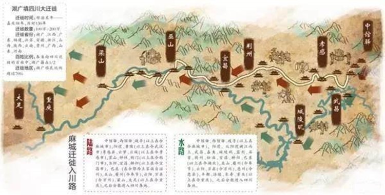 从地理位置来看,四川盆地,在古代的条件下,是最佳进入四川的路线了。所以湖北麻城从元代至清前期的移民填四川中,进入四川落业的人最多。麻城移民条件有三:一是麻城离重庆不远;二是麻城移民历史悠久,在元代、明代初年就有大