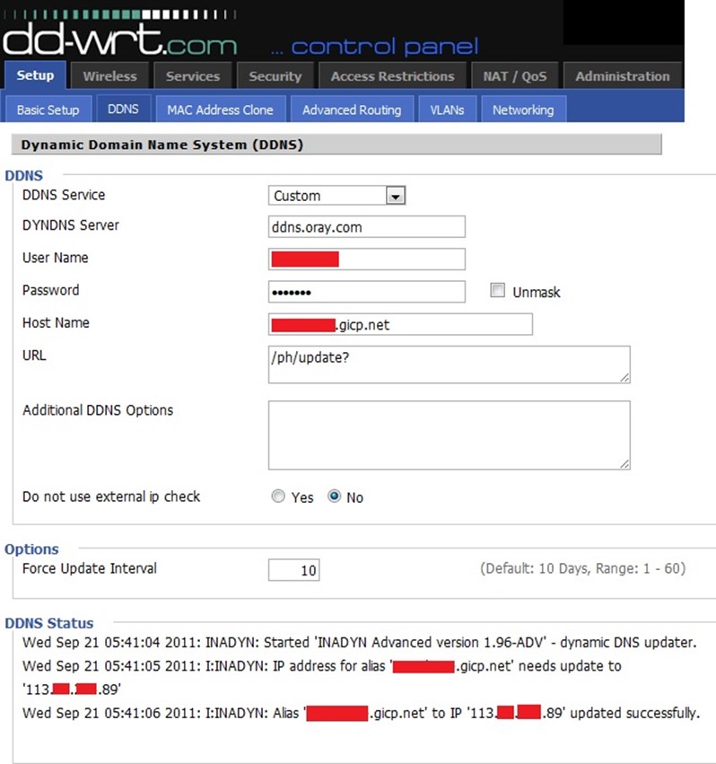 DDNS Status===>更新成功后,此处应该显示Update successful字样