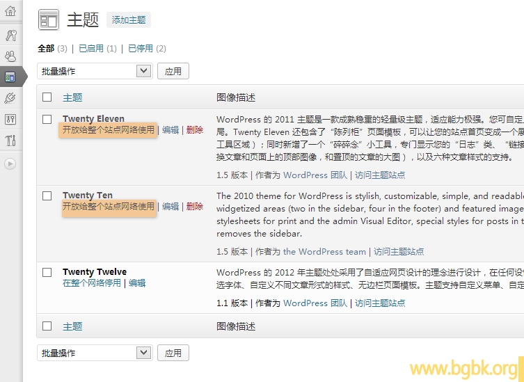 你可以将主站的主题和插件开放给整个网络的所有站点使用,详见下图: