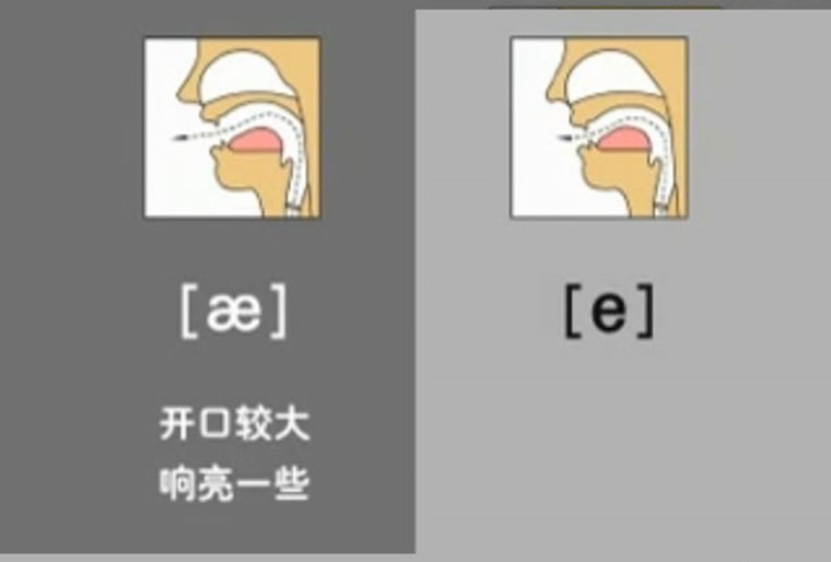 该音是个前元素,是字母a在重读闭音节中的发音。//是短元音。发音时舌尖抵下齿;舌前部稍抬高,舌位比/e/更低;双唇平伸,成扁平形。