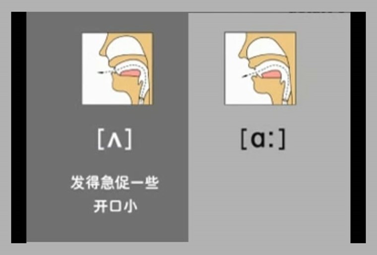 该音是个后元音,是字母o和u在单词中的读音。//是短元音。发音时舌尖和舌端两侧轻触下齿,舌后部靠前部分稍抬起,唇形稍扁,开口度较大,与/