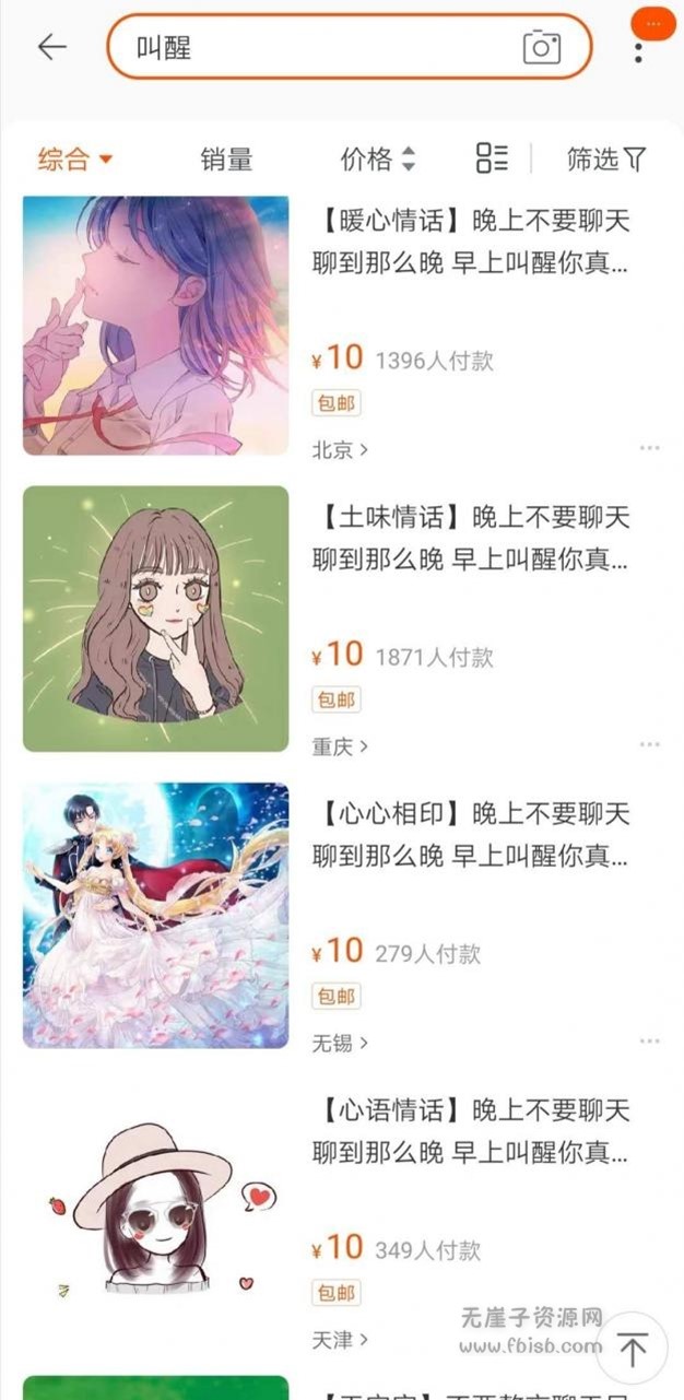 去淘宝搜索叫醒出来的页面如下,可以看到,打一通电话叫醒,市场价是10元。