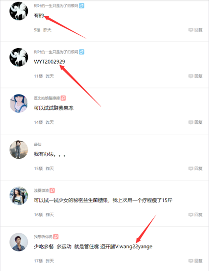 你会发现,有很多卖产品的微商在上面打广告,有的是发帖引流,有的是评论引流,不管哪种,他们最喜欢的手段是直接留微信,简单粗暴,所以搜集微信号就OK了。