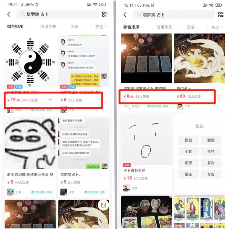 再提一个比较暴利的项目——塔罗牌,塔罗牌也算是虚拟产品中的泥石流了,虽然最近很多人在扒塔罗牌中的坑,但塔罗牌项目运营好了确实非常赚钱。