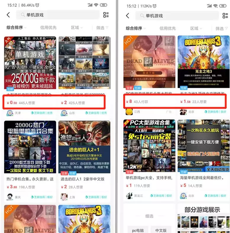 对了昨天有朋友看了单机游戏的文章之后留言,说没有在闲鱼看到卖单机游戏的,我今天特意搜索了一下,其实是有的,而且销量也是不错的。