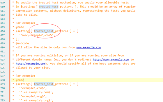 搜索"trusted_host_patterns",会有三处,修改第二处: