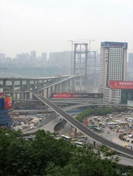 还是那座菜园坝长江大桥,光是看看这个结构,我就晕菜了,莫叫我开车上去。