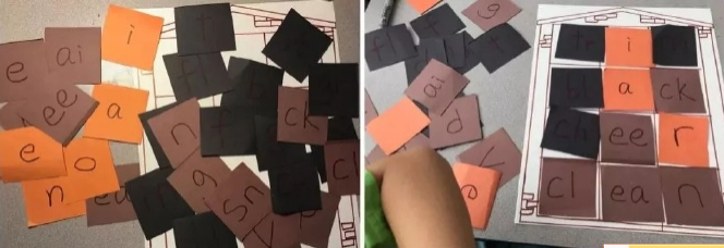 2、再剪一些小纸片,写出一些辅音或辅音组合、元音等;