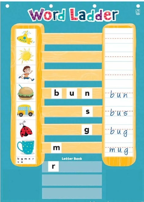 2、然后轮到孩子写,他们要在只改一个字母的情况下,写一个新单词;