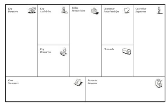 分为九大模块:客户细分,价值主张,渠道桐庐,客户关系,收入来源,核心资源,关键业务,重要伙伴,成本结构。
