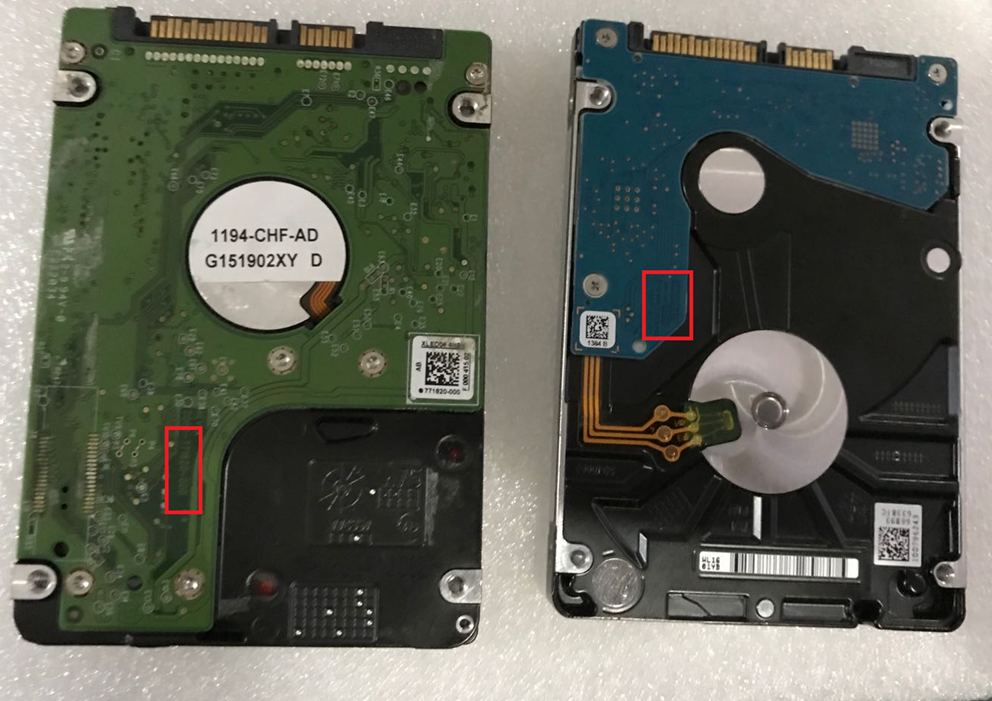 西数2.5硬盘:短路一瞬间,电路板发出烧焦味道,之后完全无声音,硬盘不通电,不转,系统无法开机。