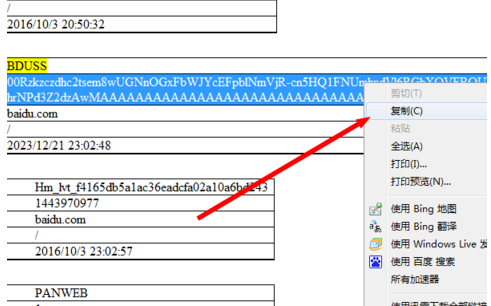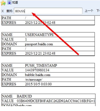 百度账号如何查找BDUSS/baidu cookie 发表评论 很多时候需要用到百度的BDUSS,有很多人都不知道怎么找。 下面我来说一下怎么用IE快速提取BDUSS。 BDUSS对百度所有应用有效。 打开百度首页登入百度账号 鼠标移到账号名称打开 账号设置 按下F12键点击缓存 点击查看cookie信息 按组合键ctrl+F弹出搜索框输入BDUSS 查找到的就是BDUSS值 选中BDUSS里所有的值 鼠标右键可以直接复制下来 相关文章微力同步飞牛os无法选择文件夹问题解决阿里云服务器,宝塔面板自动备份backup/panel中的备份文件过多导致服务器磁盘空间爆满服务器卡死无法使用路由器Padavan固件老毛子固件的中继桥接模式无线ap解释浏览器搜索引擎设置,如何填写网址格式(用“%s”代替搜索字词)?edge浏览器如何自行添加百度搜索WordPress设置固定连接后提示404