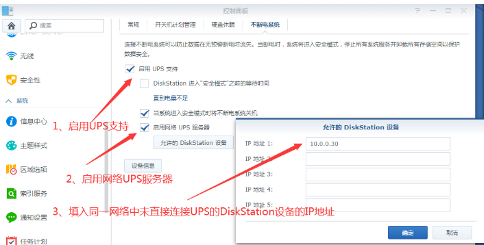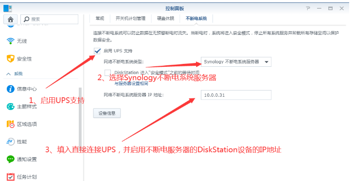 首先,是直接连接UPS的群辉设置,如下图: