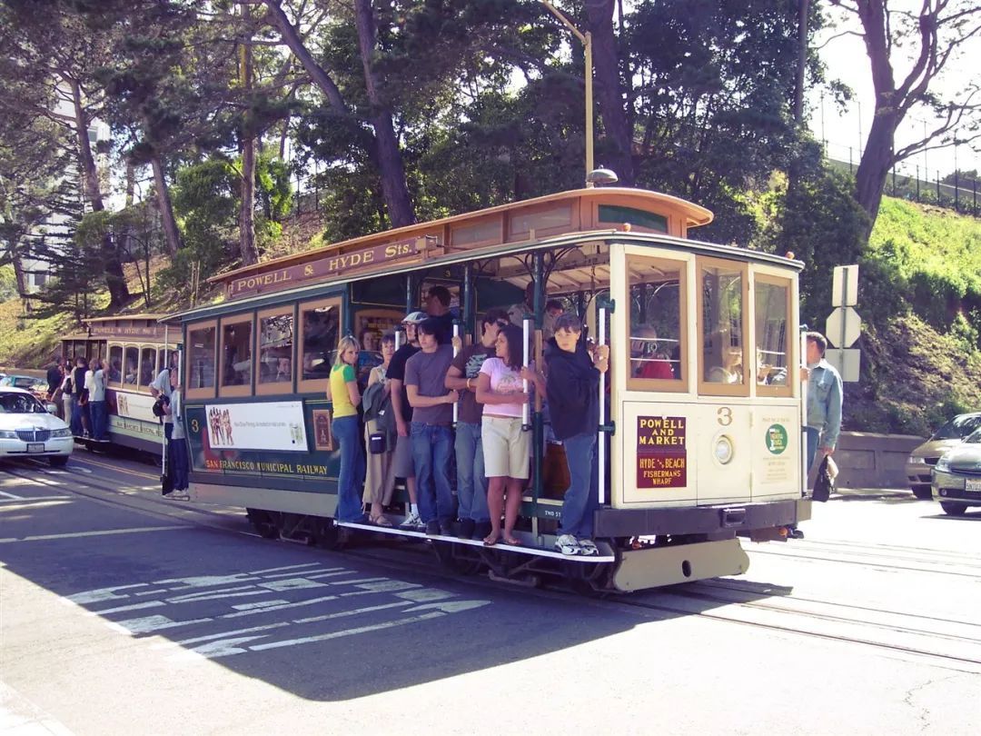 旧金山缆车,不仅帮助通勤的居民,也成了观光客游览旧金山的最佳交通工具。缆车共有叁条路线,其中包含了许多知名景点与购物中心,如渔人码头、中国城及联合广场等地。