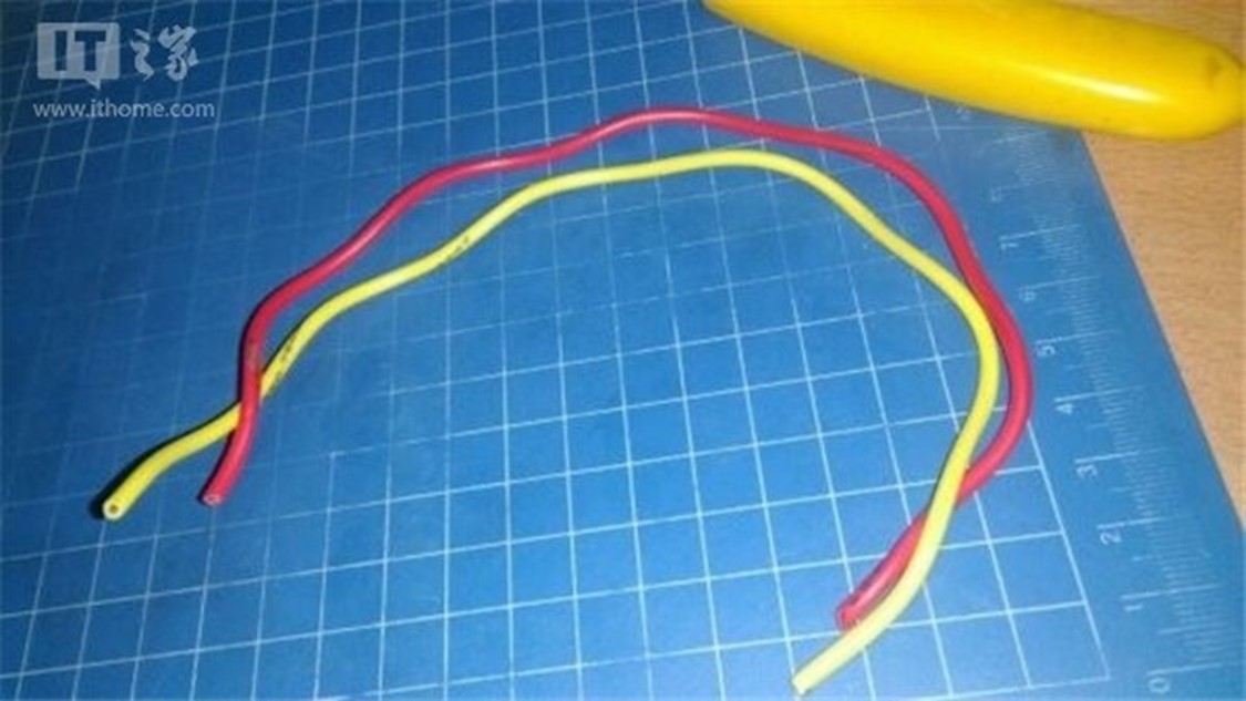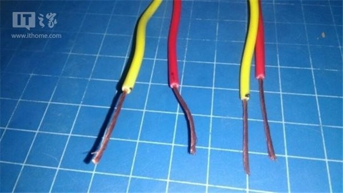 2、准备两根电线(推荐使用两根不同颜色的),长度依据你两个电源相距多远而定。笔者在这里用的长度是25cm(建议预留长一些方便以后移动电源位置);