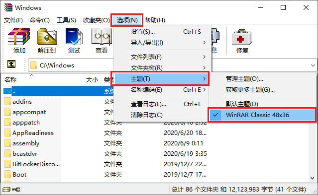 7. WinRAR 设置中的新“文件列表/列表样式/复选框”选项允许使用复选