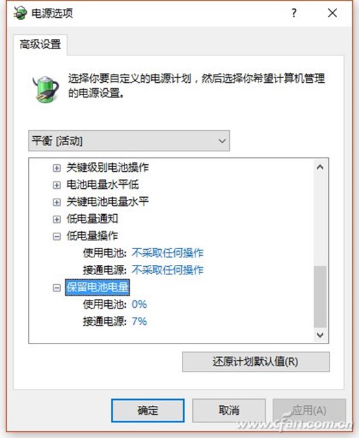 之后点击"更改高级电源设置",找到"电池"选项,把"低电量操作"换成"不采取任何操作",而"保留电池电量"项目中,电池的百分比修改成"0"后,就拔掉电源等着电池慢慢放电吧,不怕系统崩溃或程序出错的,可以直接运行各种程序,加快这一进程。