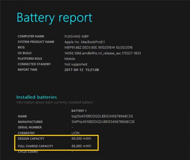 校准结束后,可以查看下电池的损耗,来确定是之前的问题是出在笔记本识别错误还是电池老化上。
