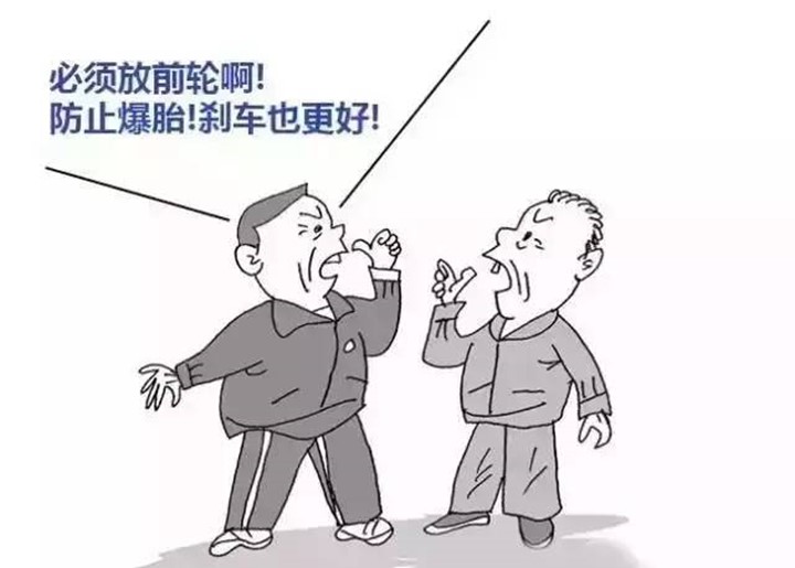 在车速降低的情况下,如果后轮出现爆胎情况,车辆还是比较容易控制的。将故障轮胎放置于后轮,可以大大降低行驶风险。
