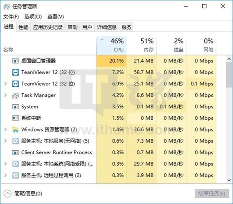 ▲图1:电脑通过TeamViewer被远程控制时,DWM占用CPU很厉害