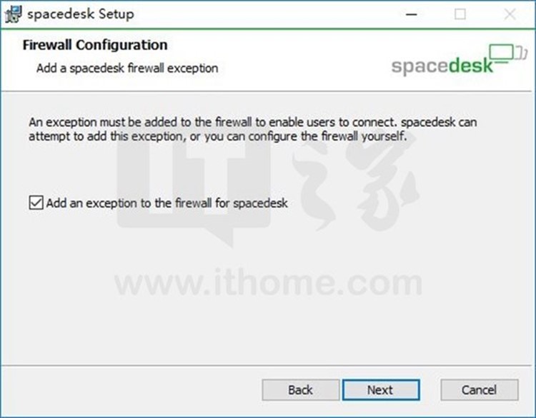 请勾选"为spacedesk添加防火墙例外"防止防火墙拦截