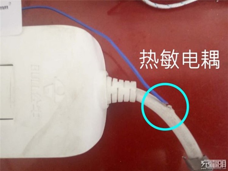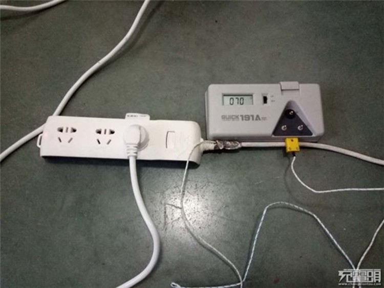 在两款插座的电源线上分别布置热敏电耦用于测量温度。